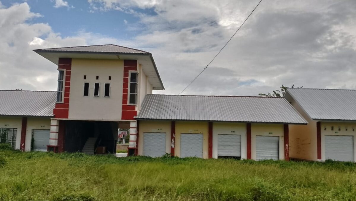 Bangunan yang seharusnya menjadi pusat perputaran ekonomi masyarakat dan sumber pendapatan asli daerah itu kini justru berubah menjadi tempat tumbuhnya lumut dan rumput liar.
