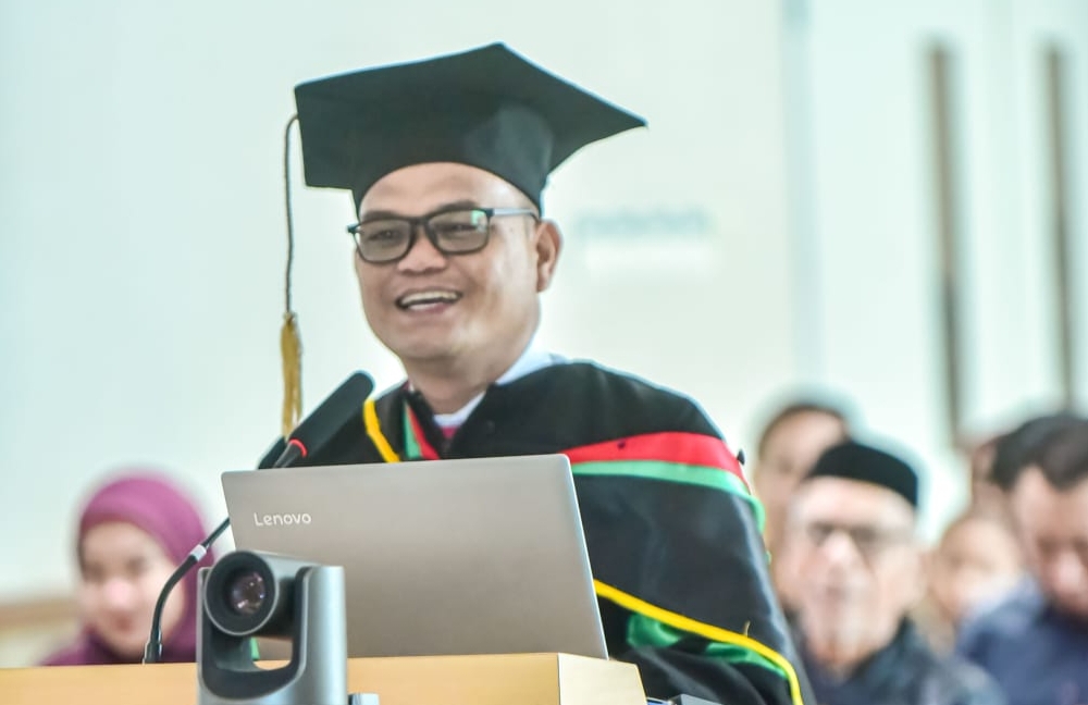 “Gelar ini saya persembahkan untuk istri tercinta, kedua orang tua, almarhumah kakak, dan seluruh saudari saya. Semua ini adalah buah cinta dan doa mereka,” ucapnya penuh haru.