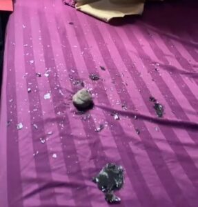 Akibat serangan tersebut, kaca serta lantai bagian depan rumah mengalami kerusakan. Insiden ini sontak memicu kepanikan warga sekitar yang terbangun dari tidur akibat suara benturan dan ledakan kecil.