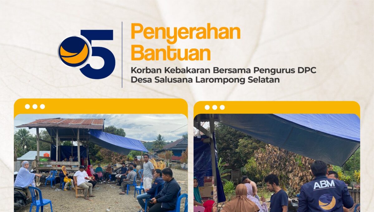 Terlihat, pengurus partai NasDem Larompong Selatan menyerahkan bantuan untuk korban bencana kebakaran di Dusun Puncama, Desa Salusana, Kecamatan Larompong Selatan Kabupaten Luwu pada Sabtu (25/02/2023).